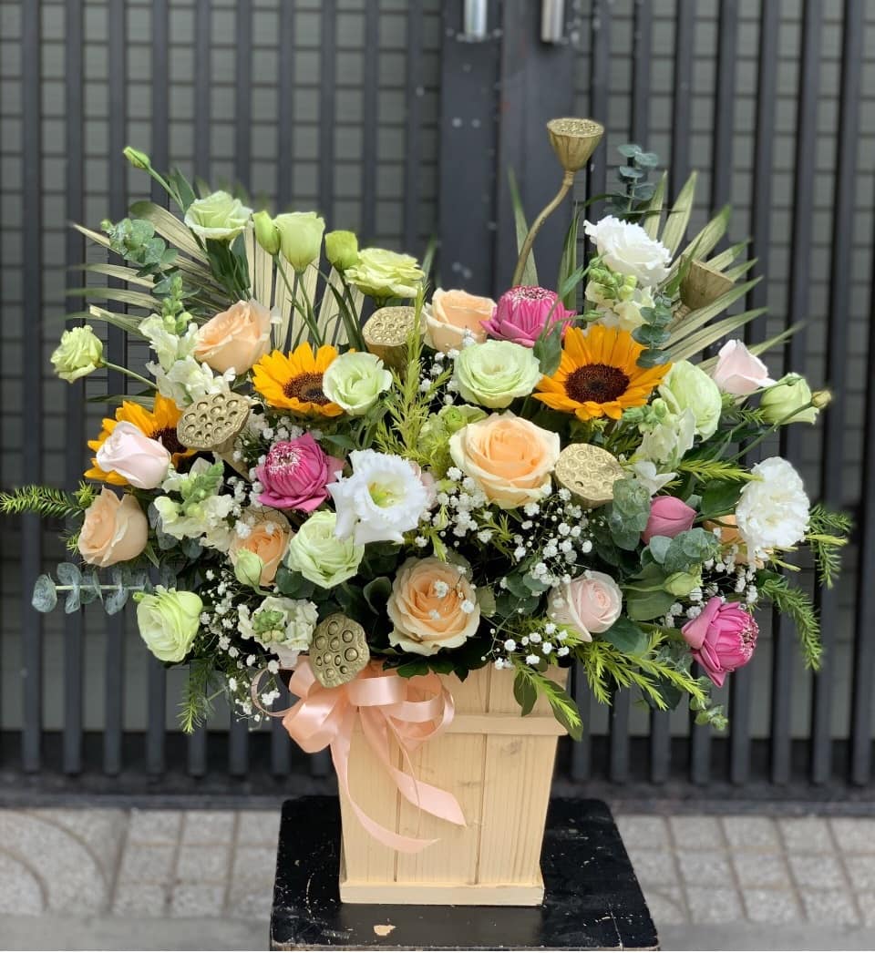 Sản phẩm Hoa tươi thành phẩm có thể gần giống với mẫu 95% - tùy thuộc vào cảm nhận của khách hàng vì là sản phẩm thủ công".